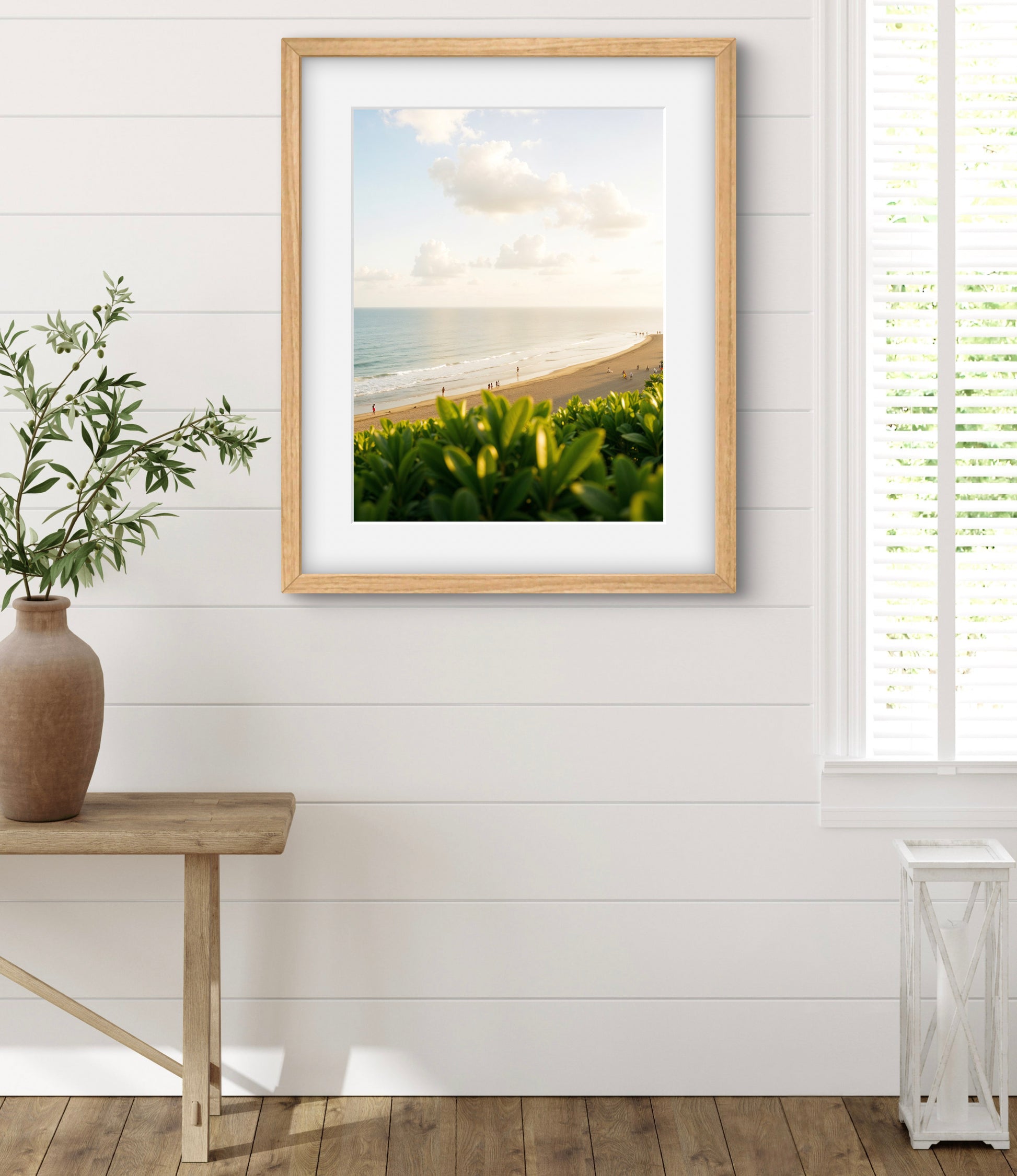 Perfect for lovers of coastal decor, minimalist aesthetics, or those who long for tranquil beach walks, this print radiates peaceful energy and sunlit simplicity.